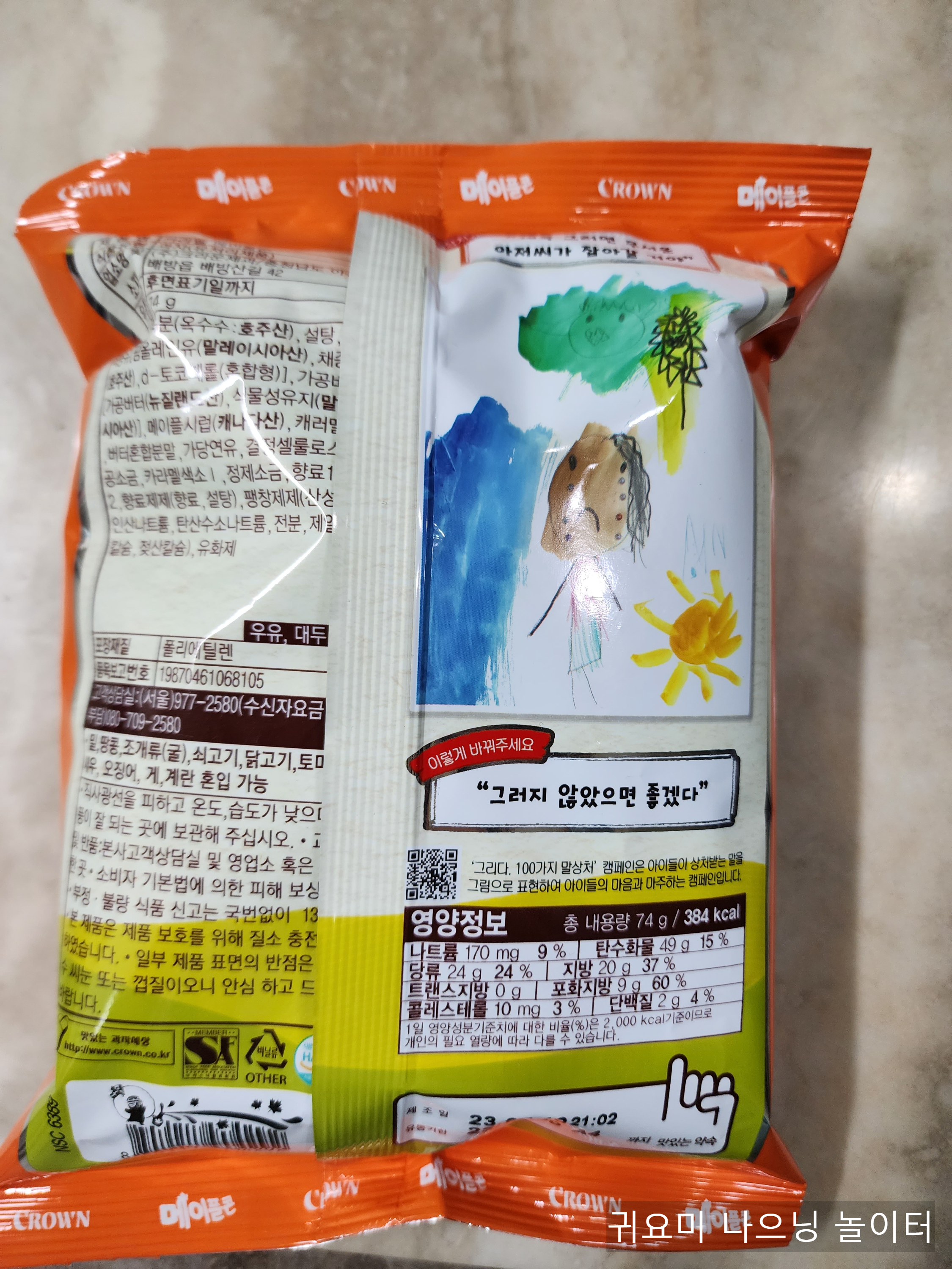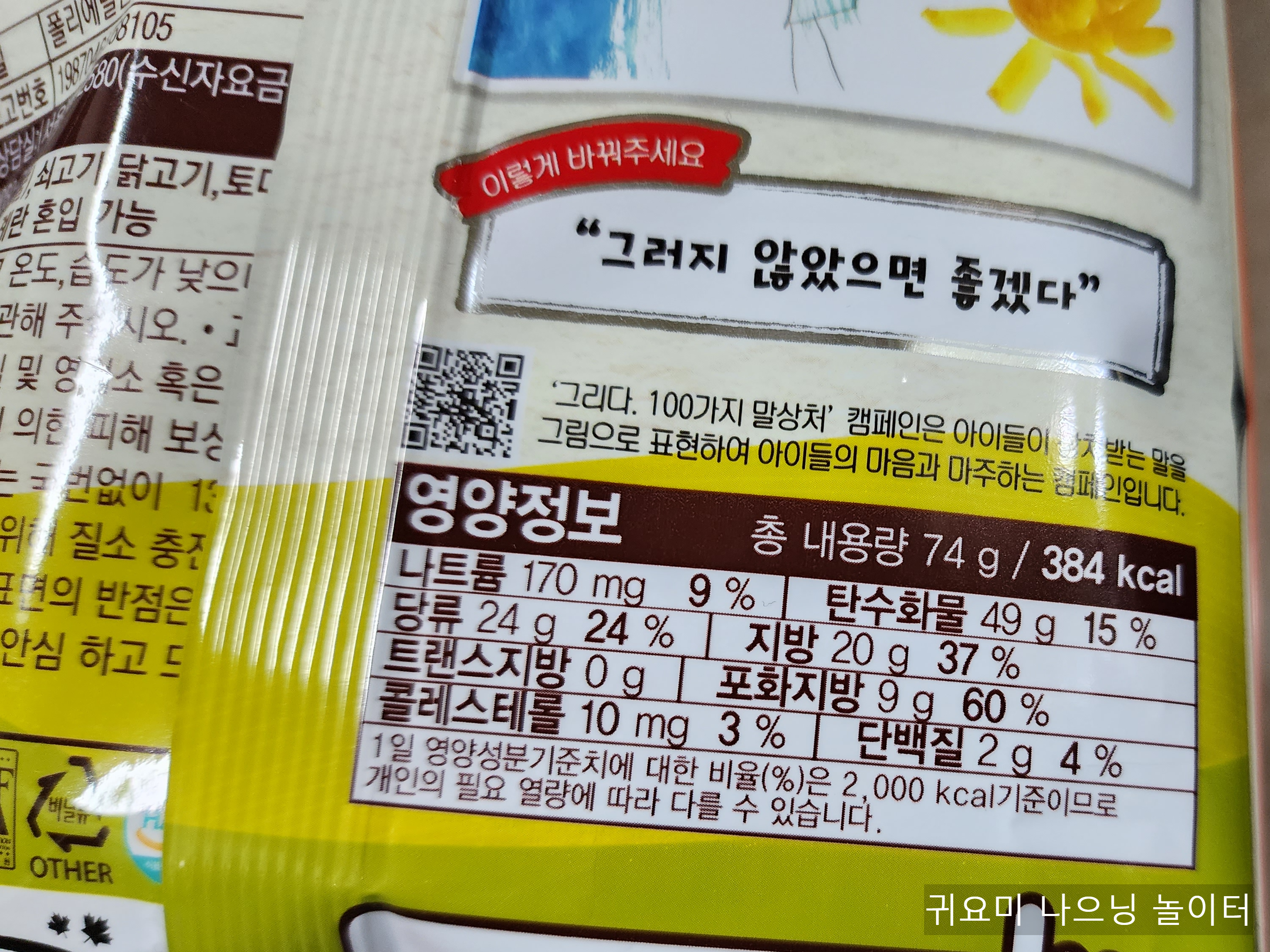크라운 카라멜 메이플콘 칼로리 총 내용량 74g 384kcal입니다.
