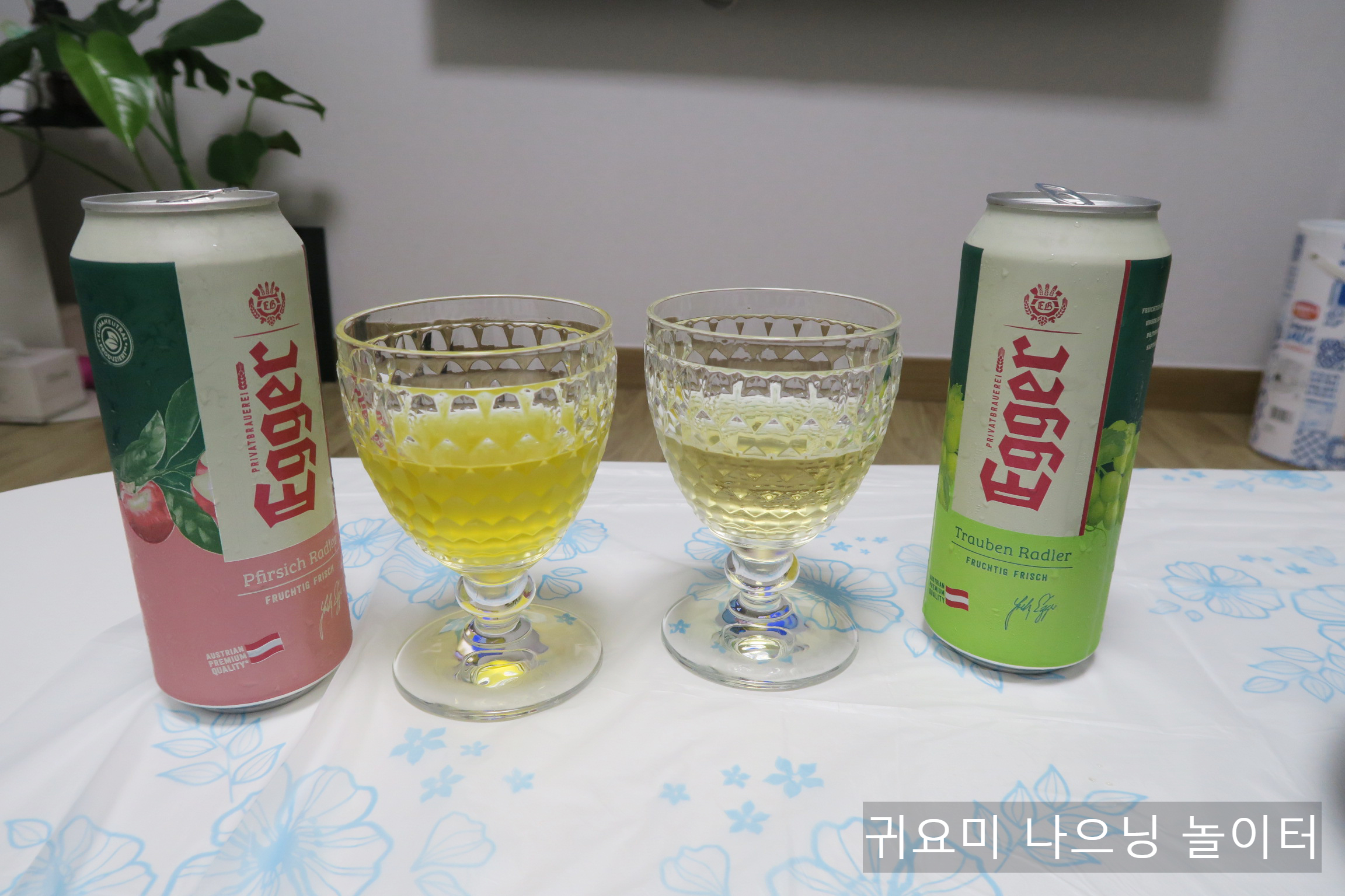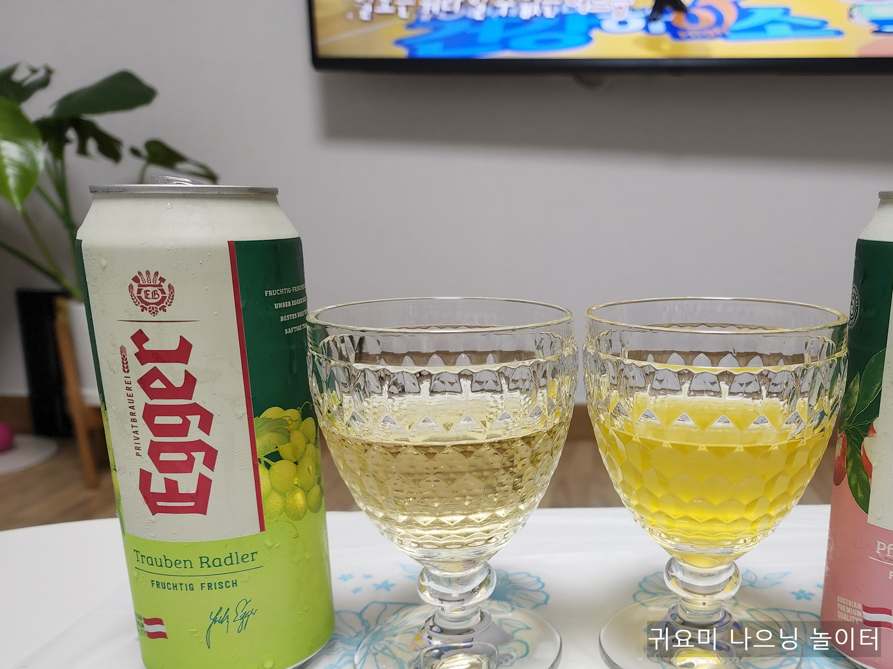왼쪽이 예거 라들러 청포도 맛